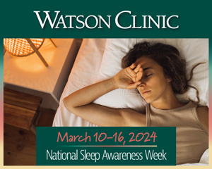 Watson Clinic’s Sleep Disorders Center was one of the first sleep labs in the state, and it’s the only one in the area accredited by the American Academy of Sleep Medicine. If you’re one of the 70 million Americans who suffer from some degree of sleep deprivation, ask your primary care doctor for a referral.
