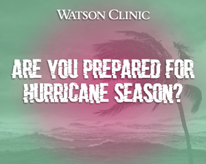 The safety of our patients and staff members is of the utmost importance to us. For the latest updates on potential Watson Clinic location closures during hurricane season, visit our